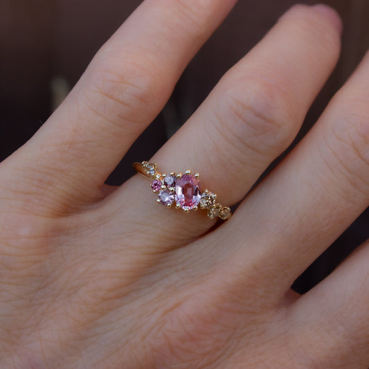 One Of A Kind Dryad V Ring - Padparadscha Sapphires And Champagne Diamonds