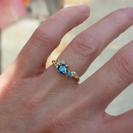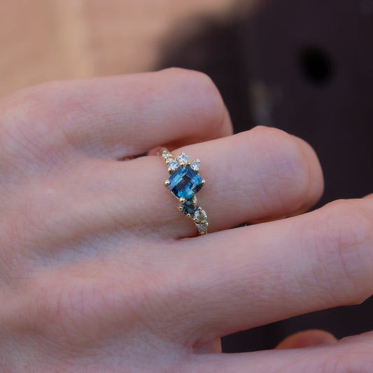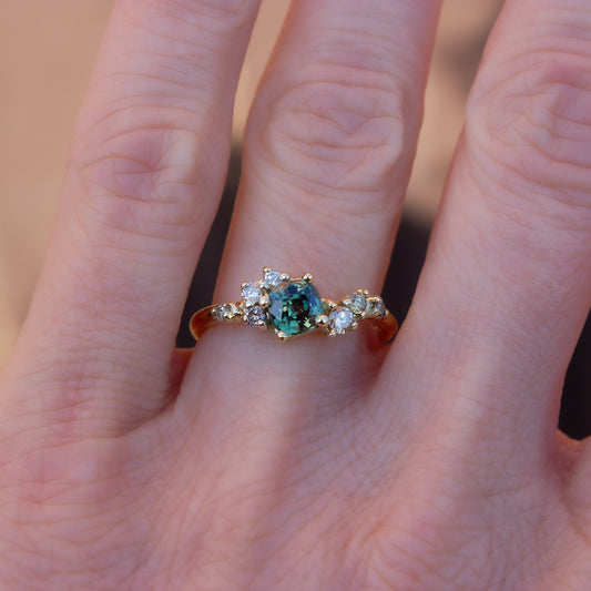 One Of A Kind Danae Ring - Teal Madagascan Sapphire 0.9ct And Natural Yellow Diamonds