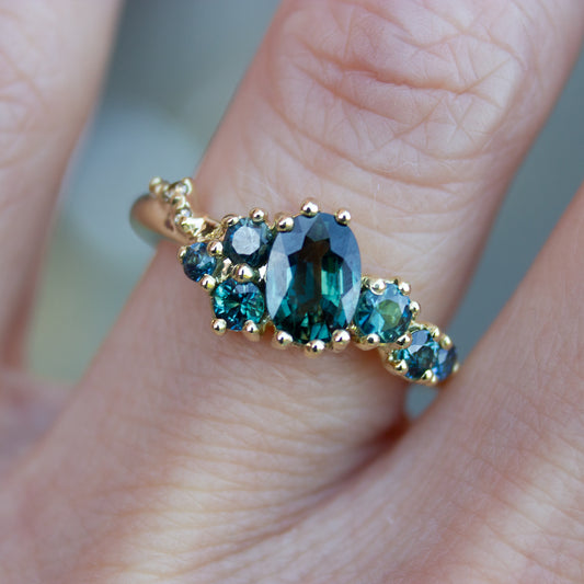 One Of A Kind Dryad V Ring - Teal Sapphires And Champagne Diamonds