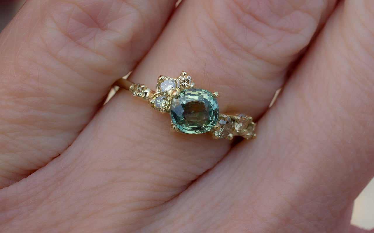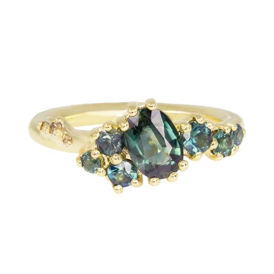 One Of A Kind Dryad V Ring - Teal Sapphires And Champagne Diamonds
