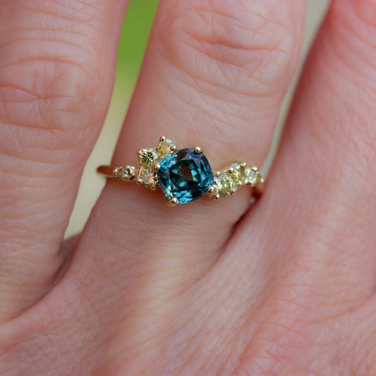 One Of A Kind Water Lily Ring - Teal sapphires And Natural Yellow Diamonds