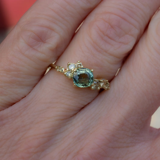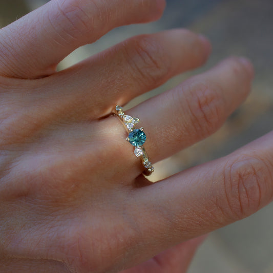 Antheia Ring - Teal Sapphire And White Diamonds
