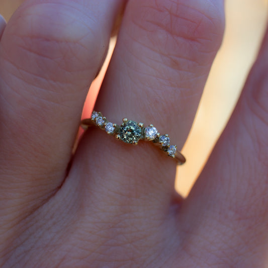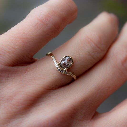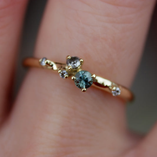 Antheia Ring - Teal Sapphire And Salt & Pepper Diamonds