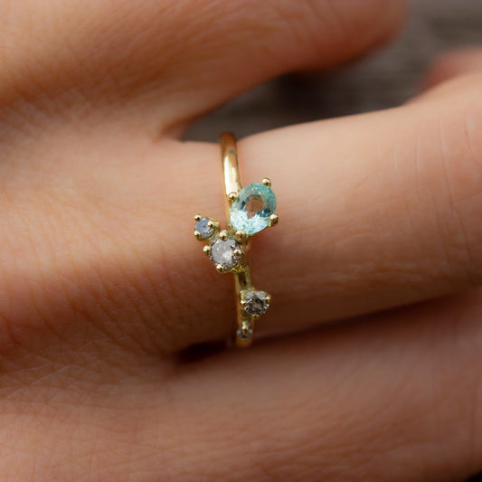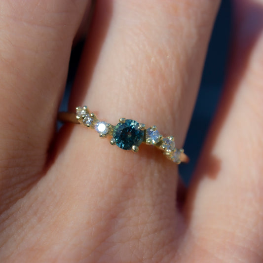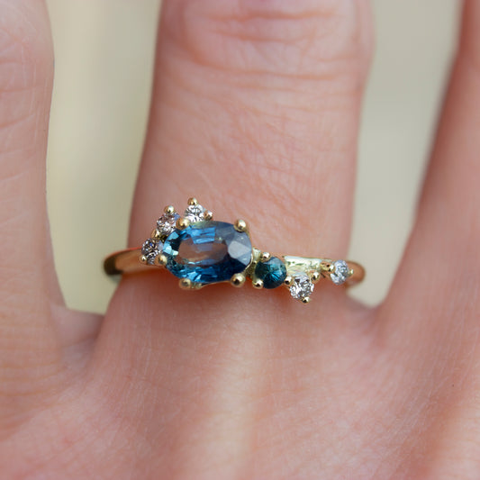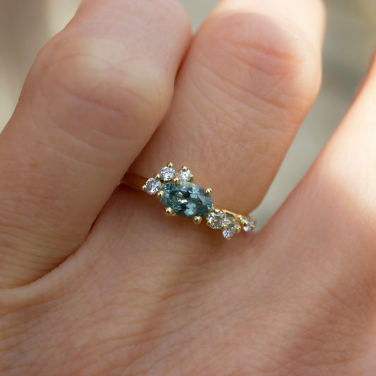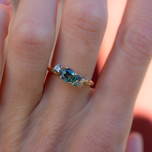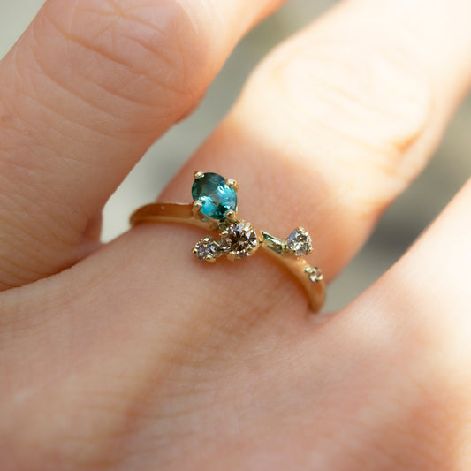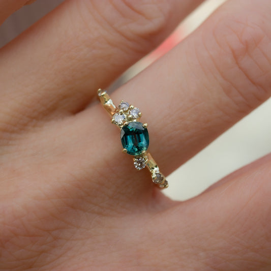 Dryad II Ring - Teal Sapphire And White Diamonds