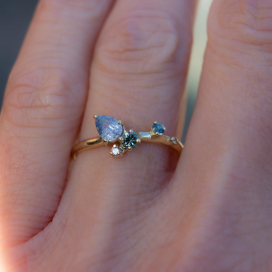 One Of A Kind Sayuri Ring - Pear Blue And Teal Sapphires And Champagne Diamonds