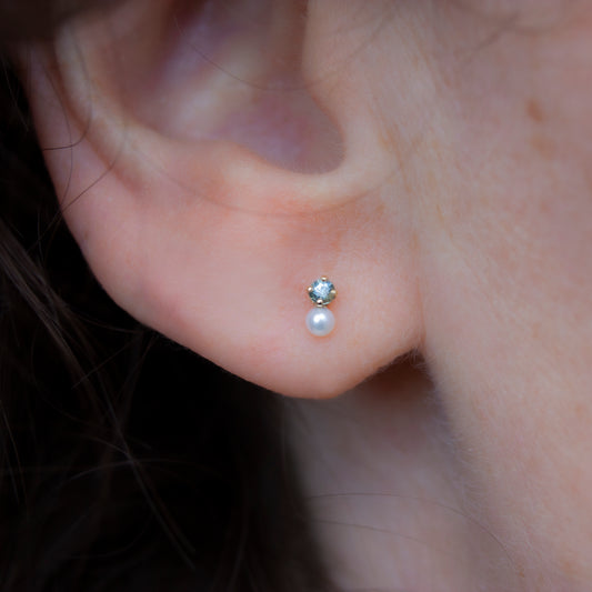 Nymph Stud - Blue Sapphire and Pearl, Single - Archive Sale