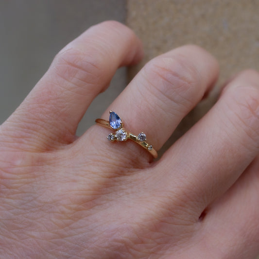 One Of A Kind Sayuri Ring - Blue Sapphire And Grey Diamonds