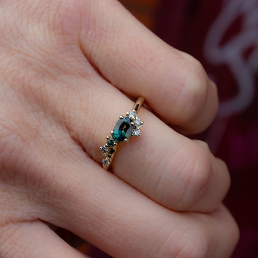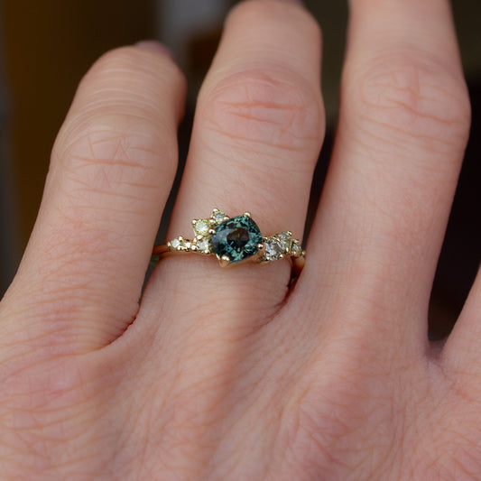 One Of A Kind Antheia Ring - Teal Sapphire 0.8ct And Old Cut White Diamonds