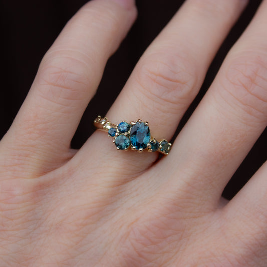One Of A Kind Dryad Ring - Teal Sapphires And Champagne Diamonds