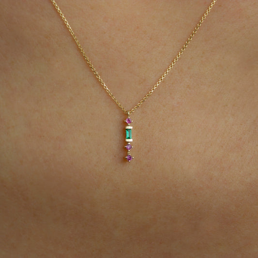 Elfin Petite Tiare Necklace - Emerald And Pink Sapphire - Archive Sale