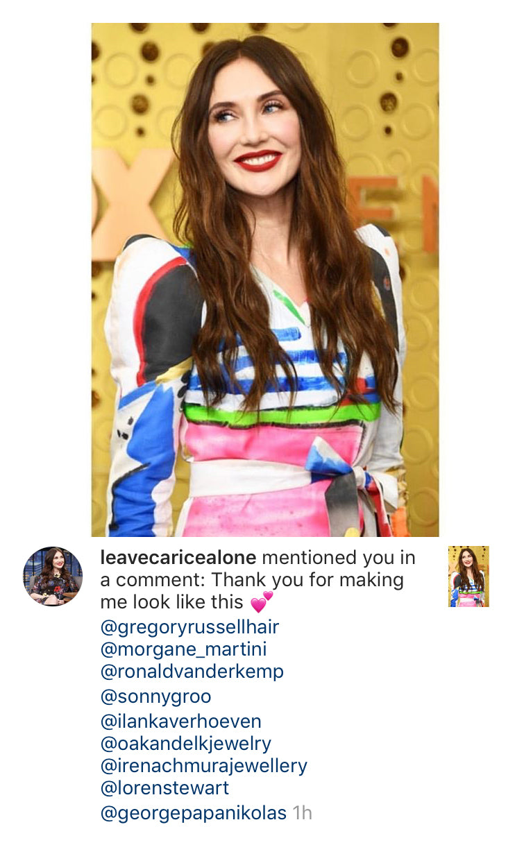 Beautiful Carice van Houten (Melisandre from Game of Thrones) wearing Irena Chmura Jewellery at the 2019 Emmys