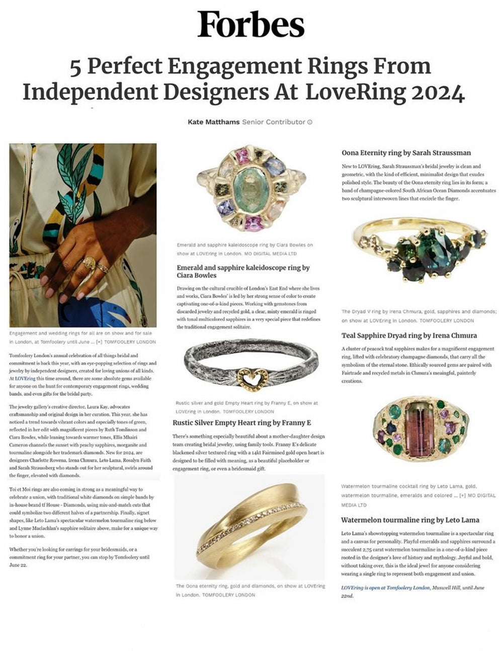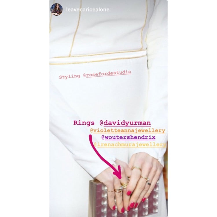 At the New York City premiere of Game of Thrones: The Final Season, Carice van Houten, famed for her role as Melisandre, stuns in an angelic white gown accessorized with Irena Chmura Jewellery rings